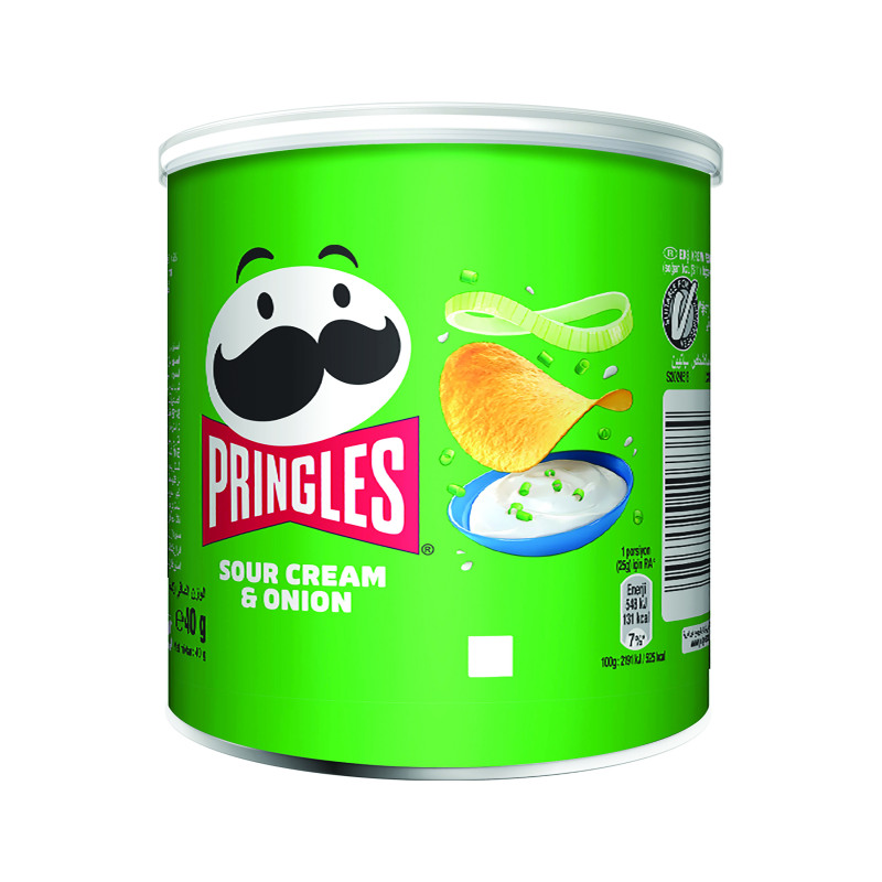 Pringles potato based crisps in sour cream and onion flavour are a great savoury flavour, the perfect blend of green onion taste with sour cream tang. A 40g snack pack is perfect for a single serve portion, great for a packed lunch snack, or to eat on the go, the resealable lid keeps the contents fresh after the foil seal is released. Pack of 12.