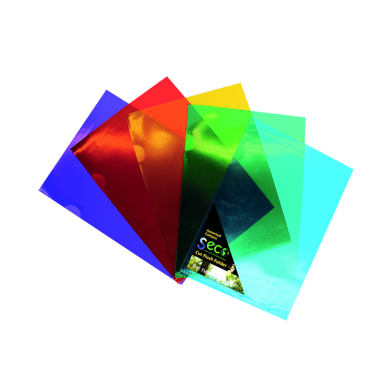 SECO Cut Flush Folders A4 100 Micron Assorted Colours PK25 - LSF-AST