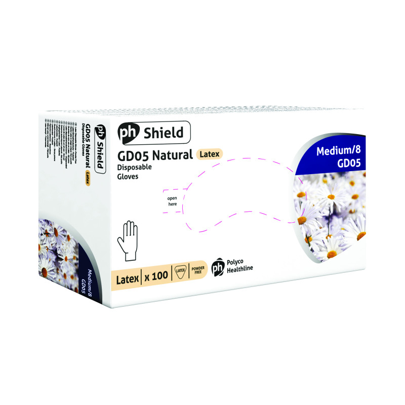 Shield Powder-Free Latex Gloves Medium Natural (100 Pack) GD05